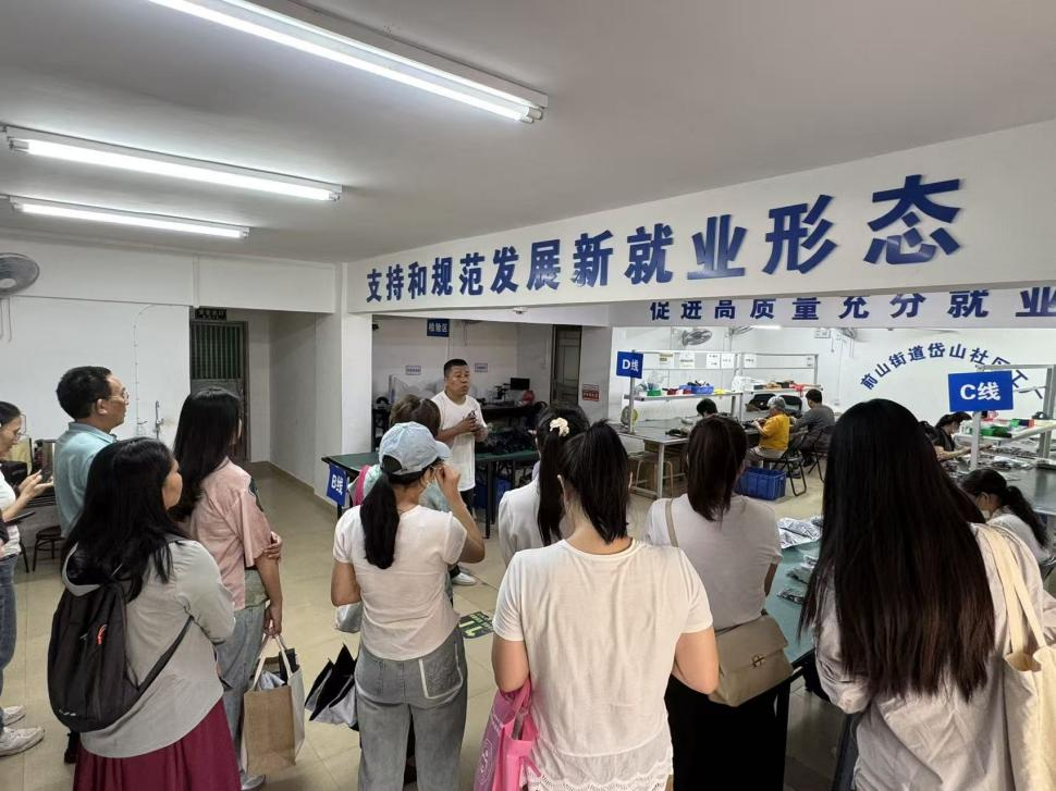 首先来到岱山社区工厂,实地考察了这一集“生产、就业、培训、服务”于一体的创新平台,在参观过程中,大家认真观察社区工厂的运作模式,详细了解其工厂收益注入社区公益基金的反哺机制。接着,我们走进融合周边商圈的社区食堂,该食堂不仅为居民提供便捷优质的餐饮服务,更通过与周边商户共建“社区生活服务圈”,探索出“公益+市场”相结合的可持续运营路径,形成资源共享、功能互补的社区服务新样本。