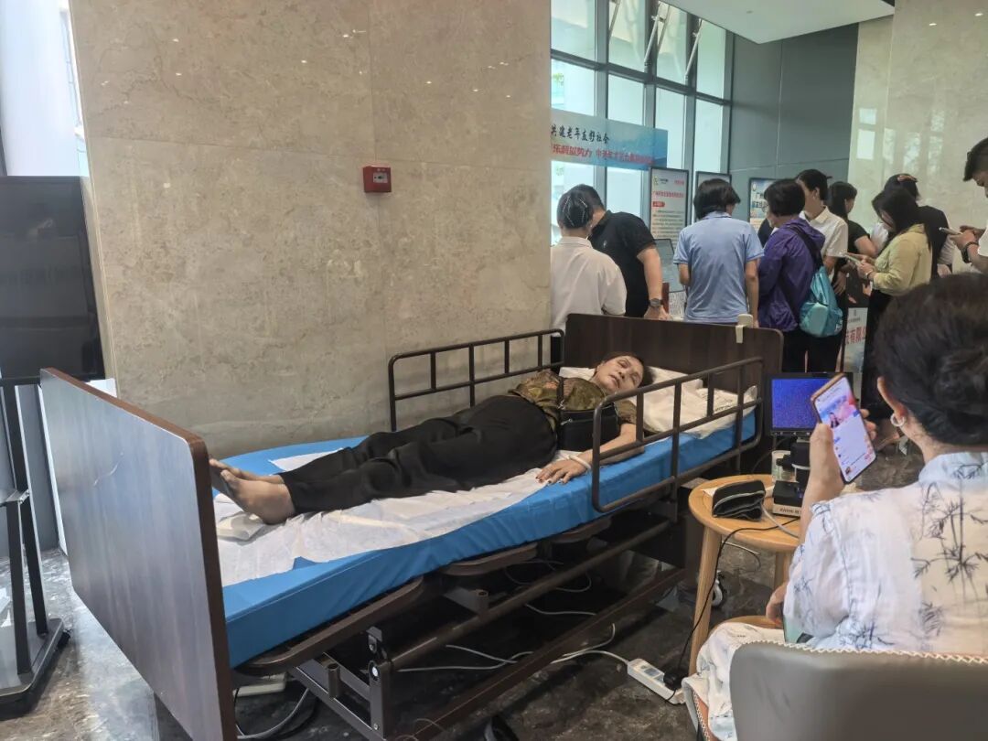 在智能助眠床体验区,许多长者排队等待体验这一改善睡眠的创新解决方案。该床垫以其独特的“仿心率”振动与“仿小跑”睡姿舒展运动模式,为使用者带来前所未有的放松感。其核心驱动系统集成于床体底部,运行平稳安静,结合环保健康的材质,真正营造出极致舒适的体验环境。一位刚体验完的阿姨惊喜地分享:“躺上去感觉全身心都放松了,微微的振动像小时候睡在摇篮里,很安心,整个人都舒展开了。”工作人员在一旁细致讲解,帮助长者调节至最舒适的模式,充分体现了“科技融入生活,健康源于细节”的研发理念。